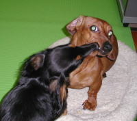 ☆今日はみんな興奮気味・・・ドタバタです☆ ![]() まあ・・・楽しそうだからいいかぁ〜と放っておいたら・・・次第にエスカレート ![]() ![]() 私がしゃがむと必ずよじ登るルビー 後ろ足は宙に浮いてます |