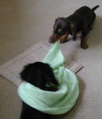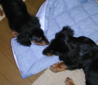 今日はカミカミDAY!お母さんがシーツを縫っている間は静かにしててネ♪ アース(左)とテラ(右)この姉妹はカミカミも一緒 ![]() 無心にカミカミをするラブ ガンを飛ばすユウ 複数のカミカミを身体の下に隠すピーチ ![]()