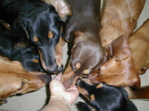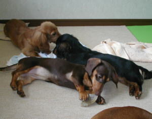 うふふっ・生後2週間です 仔犬ちゃんが大きくなってきました 産まれた時からでかいけど もっと大きくなってきました(笑) 昨日レッド君の目が開きました んで、今日ブラタン君の片目が開きました 見えるようになるまではお顔のフラッシュ 撮影は控えます 来週は目の開いたお顔を公開しますね♪ レッドくんはオーナー様募集中で〜す |