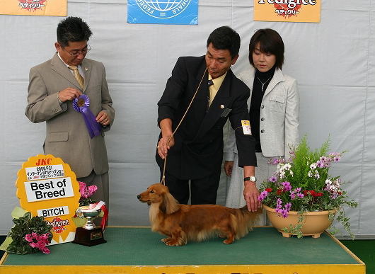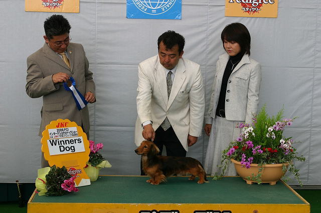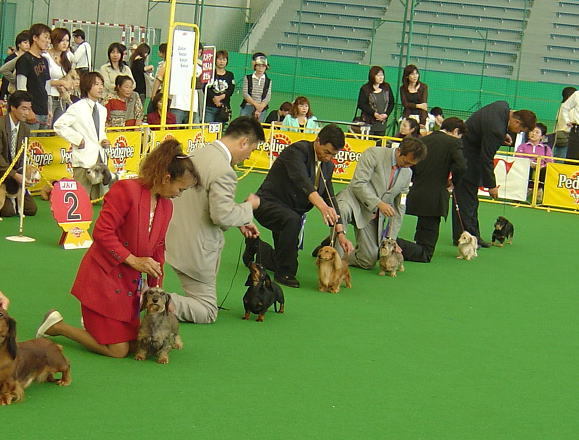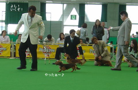 | FCIインターナショナルドッグショー(岡山ドーム) 私、岡山まで行って来ました!バレット・ボーイ・ロゼの応援に!! 素晴らしい結果に興奮の1日でした ◆出場前の準備風景 ![]() −−−−−−−−−−−−−−−−−−−−−−−−−−−−−−−−−−−−−−−−− 先日ウィナーズビッチを獲得したロゼ 調子良く歩いていたのに触診で大暴れ。。残念ながらリンクを去りました。次回に期待します。 ![]() −−−−−−−−−−−−−−−−−−−−−−−−−−−−−−−−−−−−−−−−− 最近調子を上げてきたボーイ 犬舎でムルシーにむしられた毛がやっと生え揃ってきたけど、他の子と比べると毛吹きがイマイチ。 同クラスで7頭も出陳があってドキドキでした。 ◆審査の様子 ![]() ![]() クラス1席を獲得♪ ![]() そして各クラス1席と戦って1番!ウィナーズドッグになりました!! ![]() 次はBOB戦。チャンピオンクラスに混じって出場。 それ以上は選出されませんでしたがチャンピオンドッグと並ぶボーイに感動しました〜。 ![]() ★記念撮影★ ボーイありがとう♪ ![]() −−−−−−−−−−−−−−−−−−−−−−−−−−−−−−−−−−−−−−−− そしてチャンピオンクラスにバレット登場 ![]() ![]() チャンピオンクラス1席・BOBを獲得してグループ戦へ進み・・ ![]() ![]() ![]() グループファースト(1席)を獲得! ![]() QUEENを目指しましたが選出ならず。最終成績はG1でした。 それでもダックスの中の1番★バレットは凄いです。 ![]() ★記念撮影★G1・・画像が間に合いませんでした。。 ★オマケ★ 出番待ちのバレット 普段は甘えん坊で可愛い子なのです♪ ![]() |