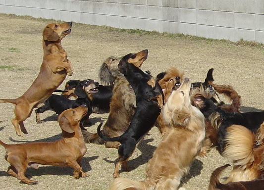レーチェは「アタシは可愛い」と思ってるんじゃ ないかと思うくらいにアピールが上手です だからなのか?レーチェは同姓にいじめられる ことが多いです ![]() 女の子3ショット(上からバニラ・トコちゃん・レーチェ) 女の子に負けないくらい可愛いつんくん ![]() モデナ&八兵衛 オヤツを見つめるモデナ・・いやしい。 ![]() みんなパパ(お留守番さん)が大好きです♪ それはオヤツ袋を持っているからです(笑) ![]() ![]() ![]() オヤツのためなら空も飛びます ![]() パパさんが投げた特大オヤツを追いかけてダッシュ! 一番手前に写ってるのは、身体が重くて一番になれないけど取り合えず頑張るグレイ ![]() ドッグランで1時間ほど遊んだら運動場へ戻ります 早く戻ると運動場でまたパパからオヤツがもらえるから走って戻ります 私のことなんか見向きもせずに通り過ぎます ・・・・みんなオヤツが命です ![]() |