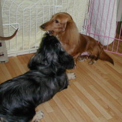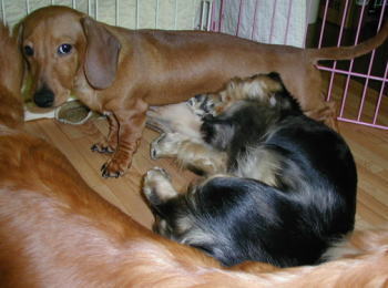 仔犬部屋にいるアースは威張りんぼう レーチェは遠慮して後ろ向き ![]() リズは新参者ながら堂々としています ![]() この頃ユウが登場してませんでしたよね。元気にしてますヨ。 ルビーはたくさん食べて出産に備えてます ![]() |