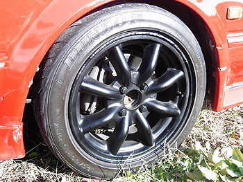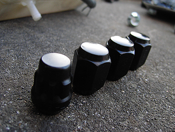 あまり気づかれなかったと思いますが、赤AWのナットはクロム(銀)。 BBSです。 でも、やっぱり黒ワタナベには黒ナット。 ネットで激安ものを購入・・・大丈夫かなぁ・・・。 ついでに、エアバルブもつや消し黒に。 ん〜、芸が細かい(笑) そして、引き締まった足回り!