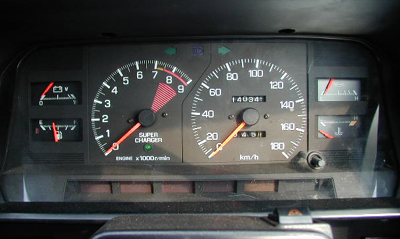 こんなAWは珍しくないでしょう。 黒AWのところでも紹介しましたが、オレンジの針が黄色く色あせています。 注)前期AWの針は、もともとオレンジではなく黄色です。 今回は、かなり濃い色の蛍光オレンジにしてみました。 黒AWはオリジナルの色にこだわったのですが、この色でサブメーターまで塗ってしまいます。 ラムコの追加メーターの針色に合わせてみたのです。 0位置を慎重に合わせて装着。 きれいでしょ。
