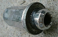 また、純正ホイールのナット穴はスラント加工されていない特殊なものですので、ナットも専用のものを使います。