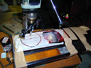 ランプの位置を決めて、ホットグルーガンで接着・・・透明なコーキング剤の方が仕上がりがきれいです・・・今度やり直します。