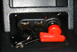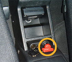 シガライターが無かったので、キルスイッチ型を装着(上の四角い物体はレーダー探知機)。