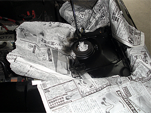 ダクトの穴からエンジンルームの端っこが見えてしまうので(特に私のは元のブルーマイカがそのまま)、