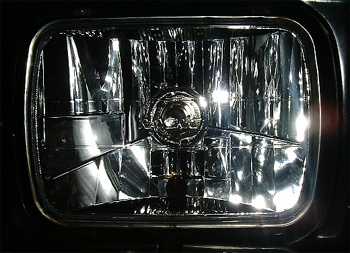 このヘッドランプ、実は本体は金属ではなく樹脂(?)。ガラスも樹脂(?)。