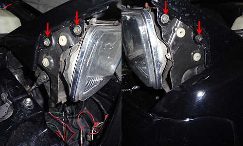 レンズ周りのカバーをはずすとバンパー奥に見えるロッド(リトラアーム)で行います。