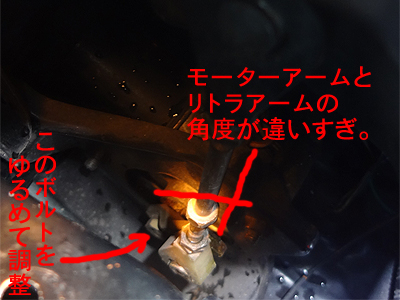 モーターから出ているアームとリトラアームがまっすぐに伸びていません。