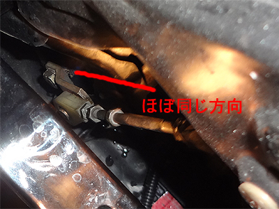 ロッドのナットで再度起きあがり具合を調整し(↓傾きが直っているのがわかるかな?)、
