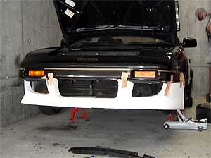 修理の際、気になっていたフロントガーニッシュのはみ出しを、がいなさんからもらった予備パーツを加工して装着。