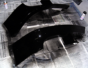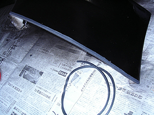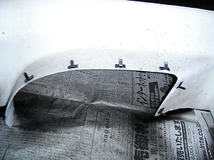 割れたFRPは、塗装して上から黒いカッティングシートを絆創膏のように貼って、