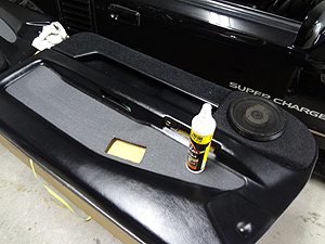 スピーカーBOXカーペットを黒く塗り(水性だとシンナー臭くならない)、