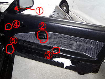 Bドアポケットのネジを2つはずし、ポケットを抜きとる。