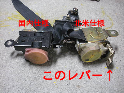 さて、シートベルト本体ですが、国内仕様とは形が結構違います(年式によるのかもしれませんが・・・)。