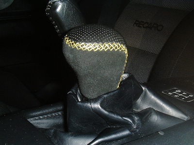 ステアリングの「バックスキン+ディンプルレザー」とお揃いにしてみました。