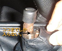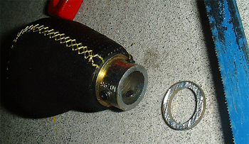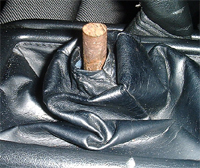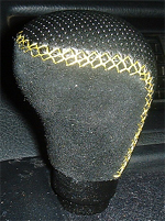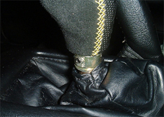 ノブの下のカバーはつけずに、ネジ部分までシフトブーツを伸ばしてバンドで固定します。