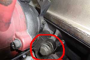 純正プーリーだとエンジン上から測定できますが、TBSやクスコの大径プーリーは純正のピンが使えないため、