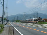 大垣市域を抜け不破郡垂井町に入った辺りで、道は再び対面通行になる。緩い勾配の上り坂、進行方向右手にはJR東海道本線の列車が姿を現す。一時期このページのトップに掲載していた写真の区間だ。