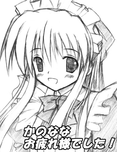■2006-06-29 なんとか… 時間ないので原稿の中から1枚着色… とりあえずなんとか当日にはコピー本が出そうです。このままいけば… そんなわけで当日のことをば… 新刊 bendiciendo \100 コピー 既刊 scioltamente \400 オフセ 時間余ったらペーパーでもつくりたいなぁ… あともしかしたら橋乃はじめ氏の何かが委託であるかな?かな?わかんね |