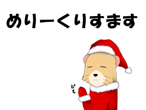 ■2007-12-24 めりーくりすます なんとかまにあったー。ども鋼です。 今回は淫獣にお願いいたしました。やる気がないのは仕様です。 うそです。すいません。絵クリックでよろしくです。だからそこ!物投げないで! 世間一般的にはクリスマスらしいですがボクにとってはただの休みです。ほんとうにry とりあえずクリスマスとか言っていますので自分自身にクリスマスプレゼントとしてモニタを買いました。 そしたらボーナス\(^o^)/オワタ 液晶テレビには届きませんでした合掌 最後にコミケのおまけですがポストカードになりそうです。(コピー本無理…) 多分先着でになるかと… |