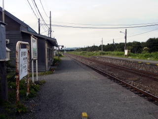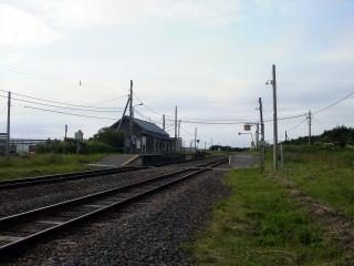 駅の周辺は民家が1〜2軒程度で周りは原野で海が見える道の交差点までは15分くらい歩く、ただし何もない原野を15分歩くのは心理的にはかなりの距離を歩く感じがする。歩いて海が見渡せる交差点(信号はない)所まで行けたとしても集落までは歩いて1時間(もしくはそれ以上)ありそうなくらい遠い所にあるのでほとんど原野の中の最果ての駅と言うのを感じてしまう。