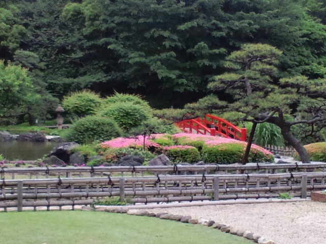 庭園は約1万坪あり、鯉が泳ぐ清泉池には赤い太鼓橋がかかり、ホテルで結婚披露宴