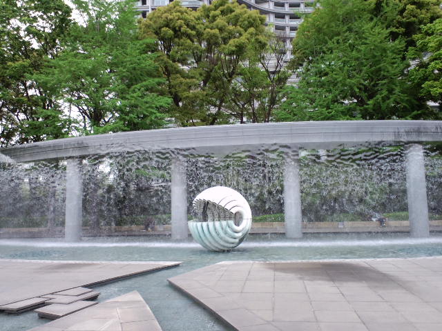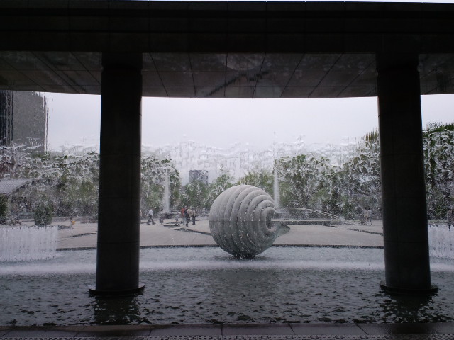 1枚目の写真の3つの大きな噴水の近くも、2枚目の写真の水が出ているところの
