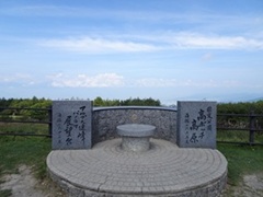 鉢伏山を登って自然保護センターがある駐車場まで戻って来た。ここにはキャンプ場があるので車も多い。 その駐車場の一角に「アルプス連峰パノラマ展望台」というのがあり、海抜1643米とあった(右の写真)。 残念ながらアルプスは見えなかった。 |