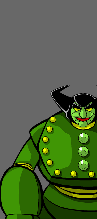国王軍と革命軍との戦闘が続く中東の某国で、国王軍によって取り寄せられた戦闘ロボットで、開発者などは一切不明。 革命軍の擁する砂漠戦用ロボット・ギドと戦うために注文されたため、砂中に潜行して戦う力を持っている。 鉄人の体当たりを受け止め、投げ飛ばす怪力を持っているほか、胸に並んだ三門の砲門や指先、上半身から生えてくるトゲから熱線を放射し、口からは火炎を放つ力を持っている。 正太郎少年は、このサターンが完成するまでの時間稼ぎとして国王軍に拉致されて来ていたのだが、サターンのあまりに無差別な殺戮に、鉄人を使って闘いを挑んだ。 一進一退の戦いの中、サターンの放射する熱線によってロケットを破壊され鉄人はピンチに陥った。 だが、その後の鉄人との格闘戦で、放射用のトゲが曲がってしまっているのにも構わずサターンが熱線を放ったため、自らの熱線で焼かれて爆発して果てた。 |