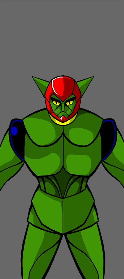 スノー国秘密諜報部によって製作され、日本に持ち込まれた戦闘ロボット。 スノー国から流出した、殺人光線に関する秘密書類を回収するために使用された。 開発者は不明だが、各部はブロック化されており、運用する際には部品をバラバラに運び込んで、現地で製作することが可能になっている。 そのボディは堅牢で、鉄人の体当たりにも耐える上、自由に空を飛びまわり、鉄人の腕をもぎ取るほどの怪力を発揮する。 また、掌から電磁波を放射し、その手で触れたものを爆発させる力も持っている。 操作は操縦器からの誘導電波によって行われるが、その有効範囲は直径10キロで、それが正太郎少年に操縦者の居場所を悟られる原因となってしまった。 実際の戦闘では鉄人相手に一歩も引かず、その飛行能力と怪力で逆に鉄人を苦しめるが、一時VL2号の組み立て基地に潜入していた大塚署長が、組み立て時に小さな部品を一つ失敬していたのが原因で動作を狂わせ、自爆して果てた。 |