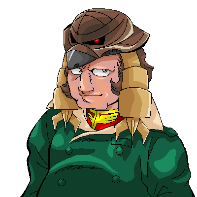 相互リンクさせていただいている、藤沢孝さまのサイトの画像掲示板で描かせていただいた作品。 その当時その画像掲示板で流行っていた、『幼稚園の女の子にジオン水陸両用MSの頭をかぶせる絵』に便乗して描いた、オッサンイラスト。 ただ単に幼い女の子を描くのが苦手だったからオッサンに逃げただけなんですが…(笑) ブーンの顔は以前買ったガンダムの人物設定画集を見ながら描いたもので、かなり似せて描けたので自分としては満足。