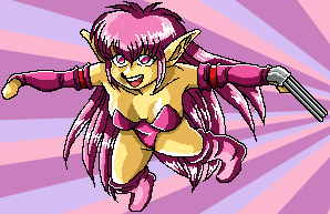 『サクラ咲けっ』のめぐさまに捧げた、『ファンタシースター2/ネイ』のイラスト。何気に好評なようで、良かった良かった。 実はちゃんとした資料がほとんど無かった(攻略本にもイラスト載ってなかったし)ので、最初はブーツを白にしてしまってたりしました。 フォトショップでプチプチドットを打って描いた最初のイラストで、結構気に入ってたりします。