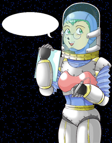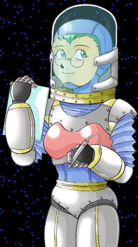 実物のゴッツイ宇宙服と、レトロSFのセクシーな宇宙服のイメージを合わせて作ったものです。