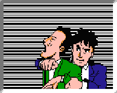 | 「く、くそぉ・・・!!」 その男は【かんだ】の手を捻りあげ、ナイフをその手から叩き落した。 ・・・やがて【かんだ】は、【ぜんぞう】の通報で駆けつけた警官に取り押さえられた。 「あっあなたは・・・!!」 |