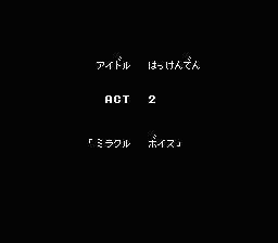 | : | 『あなたは歌唱力に磨きをかけねばなりません。その為には、5年前引退した演歌の女王みやこカルミに弟子入りするのです。ただ、彼女がどこにいるのか誰も知りません。』 | ||