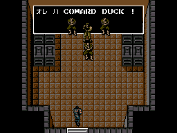 部屋に入ると、回りに人質を配したCOWARD DUCKが偉そうに名乗りをあげる。 *『俺はCOWARD DUCK!』 |