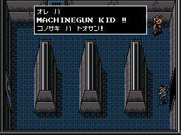 このブロックに足を踏み入れると、いきなりMACHINEGUN KIDが雄叫びを上げる。 *『俺はMACHINEGUN KID!! この先は通さん!』 |