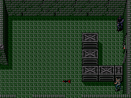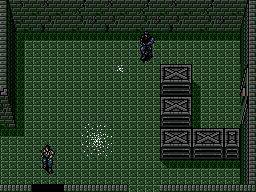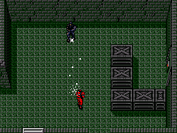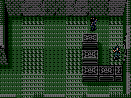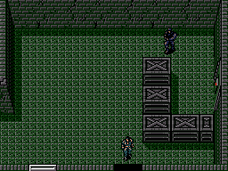 | 画面上部を左右に転がりながら、ライアットガンで射撃してくる。 ライアットガンの弾は大きく広がるので、細かい避け方をしているとダメージを受ける。 ハンドガンかサブマシンガンで弾を避けつつ撃てば、さほど苦労せずに倒せるが、画面右下の安全地帯に陣取って、リモコンミサイルで倒す事も可能。 基本的に、『SOLID SNAKEに近い方に移動→三発射撃』という行動を繰り返すので、その隙を見て攻撃していくのがベター。 ただし、SOLID SNAKEとX軸が近い場合には、移動せずライアットガンを連射してくるので注意。 画面右の遮蔽物を盾にして、相手が顔を出したら撃ちこみ、弾が迫ってきたら隠れる、ヒット&アウェイを繰り返す事で、ノーダメージで倒す事も可能。 |