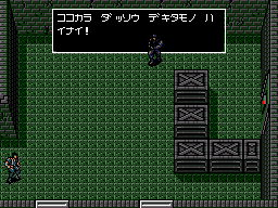 まずは装備も武器もないと手も足も出ないので、右下のドアをパンチで開けて、中の部屋で奪われた装備一式を回収する。 その時、中に発信機が紛れ込んでいるので面倒な事になる前に捨てておく事。 持ったままだと、敵兵に確実に見つかってしまう。 |