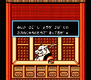 ぎゅうまおう(牛魔王) | このゲームのラスボス。最初は左の姿だが、一定の回数攻撃を加えると右の姿に変化する。 物々交換の結果手に入る水晶玉(牛魔王の力を封じることができる)があれば、非常に弱いボス。 ちなみに水晶玉がない場合でも、ただ単に相手の耐久力が増すだけなので、なければないでかまわない。 当たり判定は頭にしかないため、ジャンプしながら頭を突け。 一定のタイミングでジャンプ→突くを繰り返すと、まったくダメージを受けることなく倒すことができる。 |