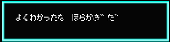 | レゲタン | : | PCエンジン版の“ビックリマンワールド”でもそうだったけど、“らせつじょ”が悟空に質問をしてきて、それに正解すれば戦わずしてクリアできるんだ。 | |