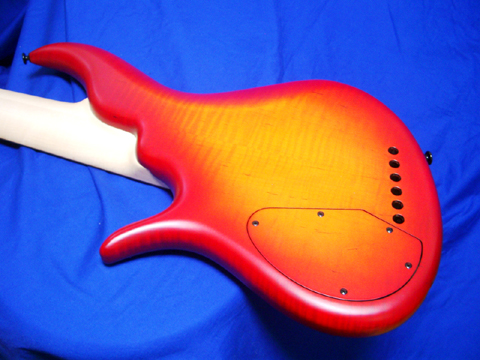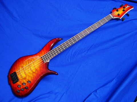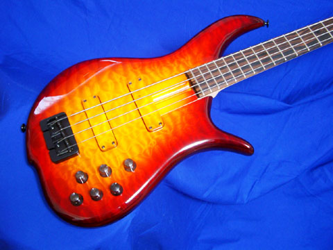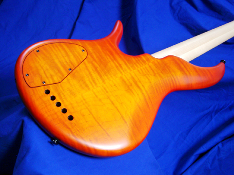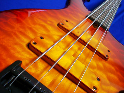 分厚いFlame Maple指板の為か、指弾きのサウンドはとてつもなく太く、また同時にスラップのトーンは、Maple指板特有の明るくはじけるものになっています。