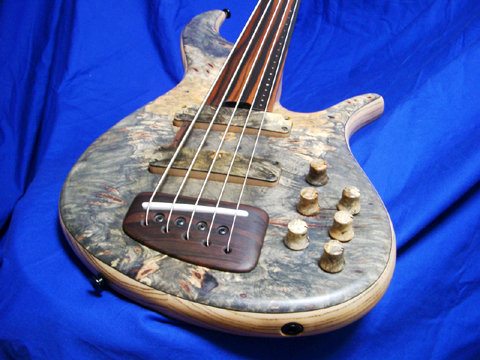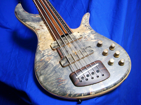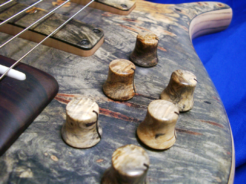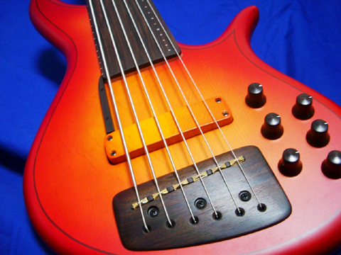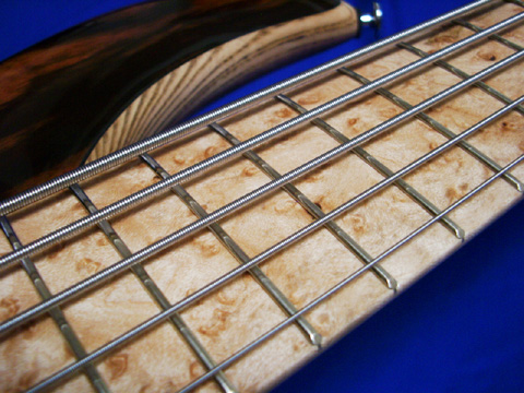 サウンドの方は、このGaboon Ebony指板の影響が大きいように感じられ、他のBN6と異なった趣のある良い意味で、大変まとまりのある音色になっており、時間をかけること無く、使いたい音が決まってくれるものです。 |