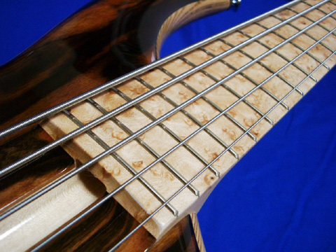 その為、Macassar Ebony指板ながら、Maple指板のBNのような明るさが感じられ、スラップのトーンにも一層の深みが感じられます。 ハイエンド楽器特有の透き通った感覚を持ち、弾き手のニュアンスやさじ加減が良く出る楽器です。