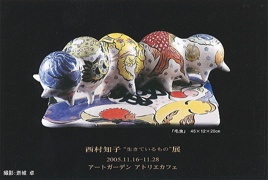 | Nishimura tomoko . 西村知子“生きているもの”展 −アートガーデンプレゼンツ− 2005.11.16(水)-11.28(月) 11:00am-6:00pm(最終日5:00pm) アートガーデン アトリエカフェ |