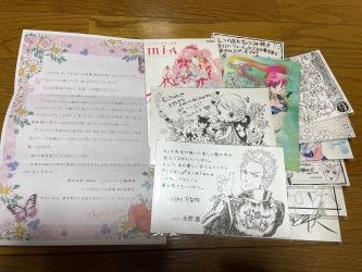 スギ花粉発症したのか、くしゃみと鼻水が大変なことに。 アレグラ飲んですぐに治まったってことは、まぁそういうことなんでしょうね。 これから長い付き合いになるのかなぁ・・・。 ![]() 12月に応募させて頂いたいのまたむつみさんの画集(MIA)のメッセージカードセット、当選していました。 応募期間が2回に分かれていたのですが、後半にしたのが功を奏したのかもですね。 もちろん永野護さんのイラスト(ジャッキー)や万梨阿さんのメッセージが書かれたmのを入手できたのはうれしいですが、 いのまたさんのイラストも小説版ドラゴンクエストの頃から好きでしたのでうれしさもひとしおです。 遠い遠い昔(小学生の頃?)に当選したエニックスのフェア当選品と一緒に大切にしていこうと思います。