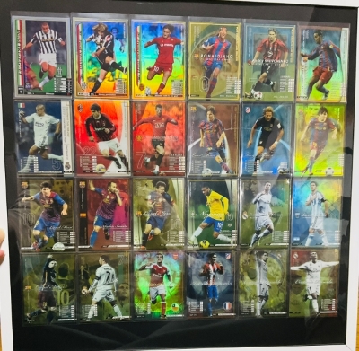 DQのポストカードを大事に保管してきましたが、それ以外にも以前収集して残してきたものがありまして。 2002年位からゲーセンに通い詰めて死ぬほど遊んだ「WCCF」。 FSSが長期休載状態だったこともあってか、今考えると信じられない位はまっていました。 2006年位までは排出されたカードをフルコンプしていたと思います。 その中で所謂トップレアといわれたMVPカード、ゲームが2022年に完全終了して安くなっていたましたので、オクで購入、額装してみました。 自引きは2段目右から3番目のメッシが最後だったかな。これだけの数が並ぶと壮観ですね。 後半はCロナウドとメッシばっかりだったのね。そしてデザインも少し地味かな? そいえばBSの歌番組で長山さんが瞳の中のファーラウェイ歌唱されていましたね。 ご本人によると結構久々だったとのことです。 てなことで、ファイブスター物語40周年おめでとうございます(え?